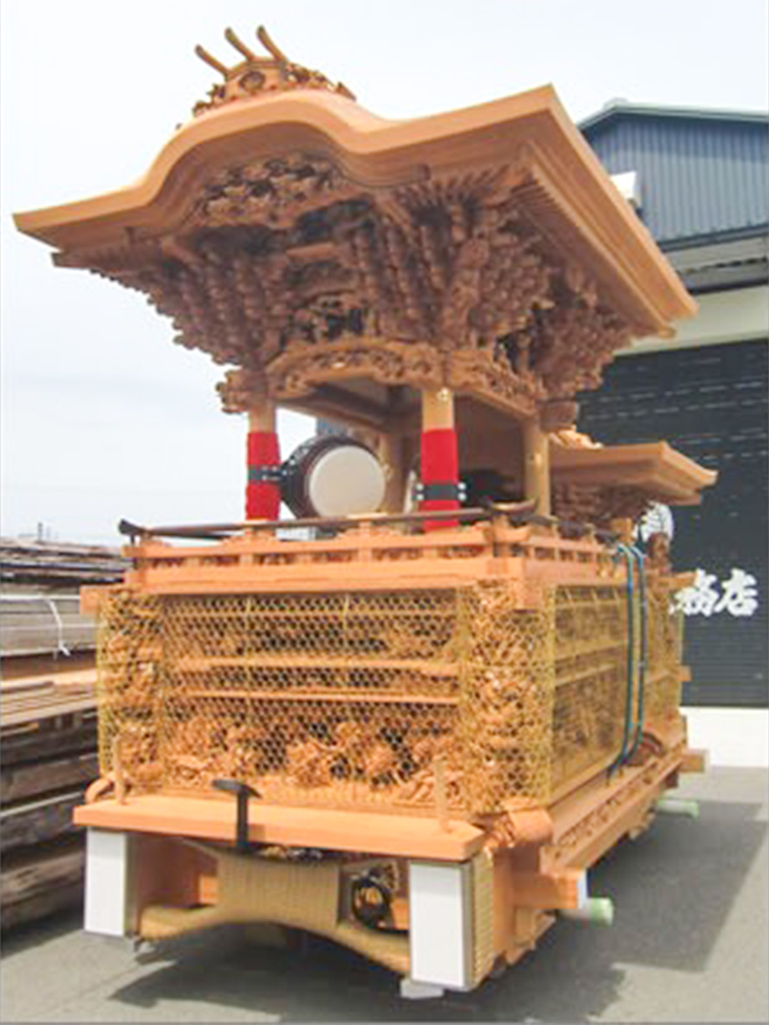 近畿一円で手がける地車や布団太鼓、やぐら、神社仏閣――すべては、技と心を尽くした結晶です。